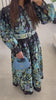 Robe longue fleurie noire à ceinture